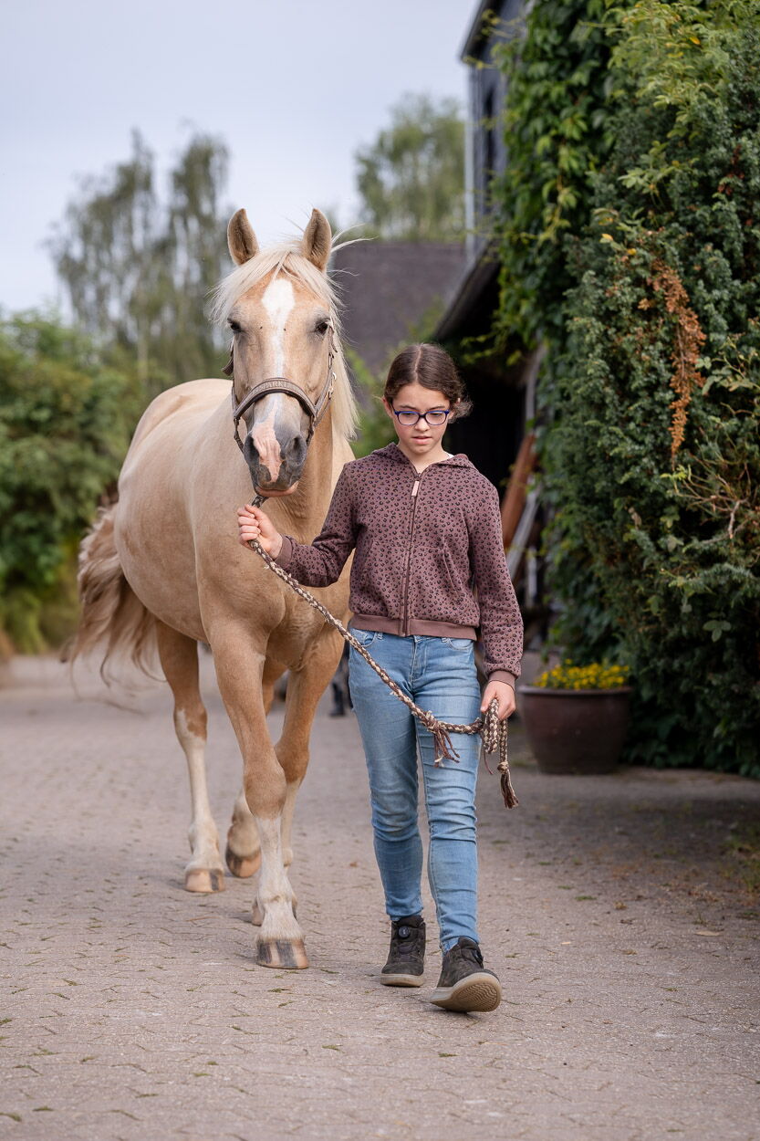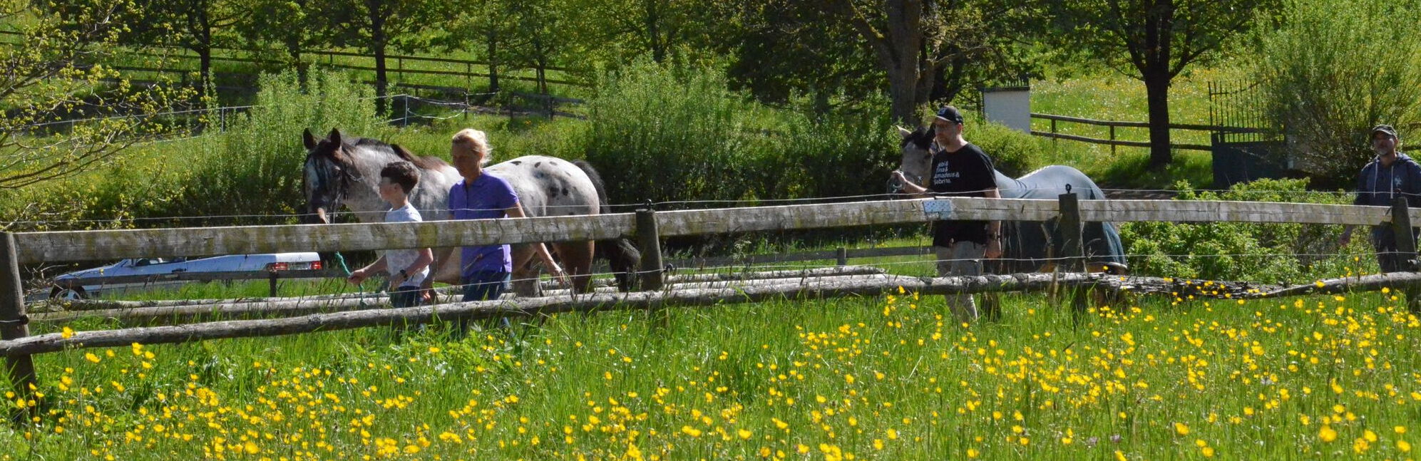 Gemeinsames Führen der Pferde von und zu den Koppeln