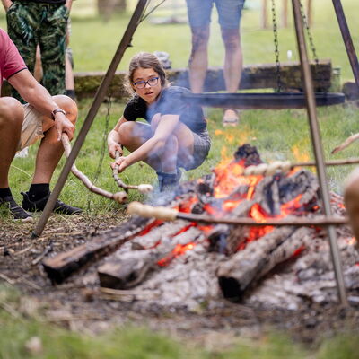Einen Abend am Lagerfeuer mit Stockbrot für die Kinder und Wein für die Erwachsenen (witterungsabhängig ab einer Woche Aufenthalt und in den Ferienzeiten)