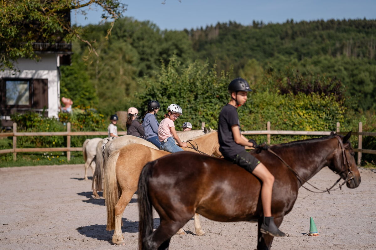 Dein Familienurlaub auf dem Reiterhof wird bei uns aktiv gestaltet. Groß und Klein können das Reiten auf unseren wunderbaren Pferden genießen, herrliche Geländeritte unternehmen, Ponywanderungen erleben und an spannenden Reiterspielen teilnehmen. Zudem laden wir Dich ein, am sauberen Bach zu grillen und dabei Lagerfeuerromantik mit gratis Stockbrot und Wein zu erleben. Unser idyllischer Bachspielplatz und die Freude mit den vielen Tieren – ein tolles Erlebnis.