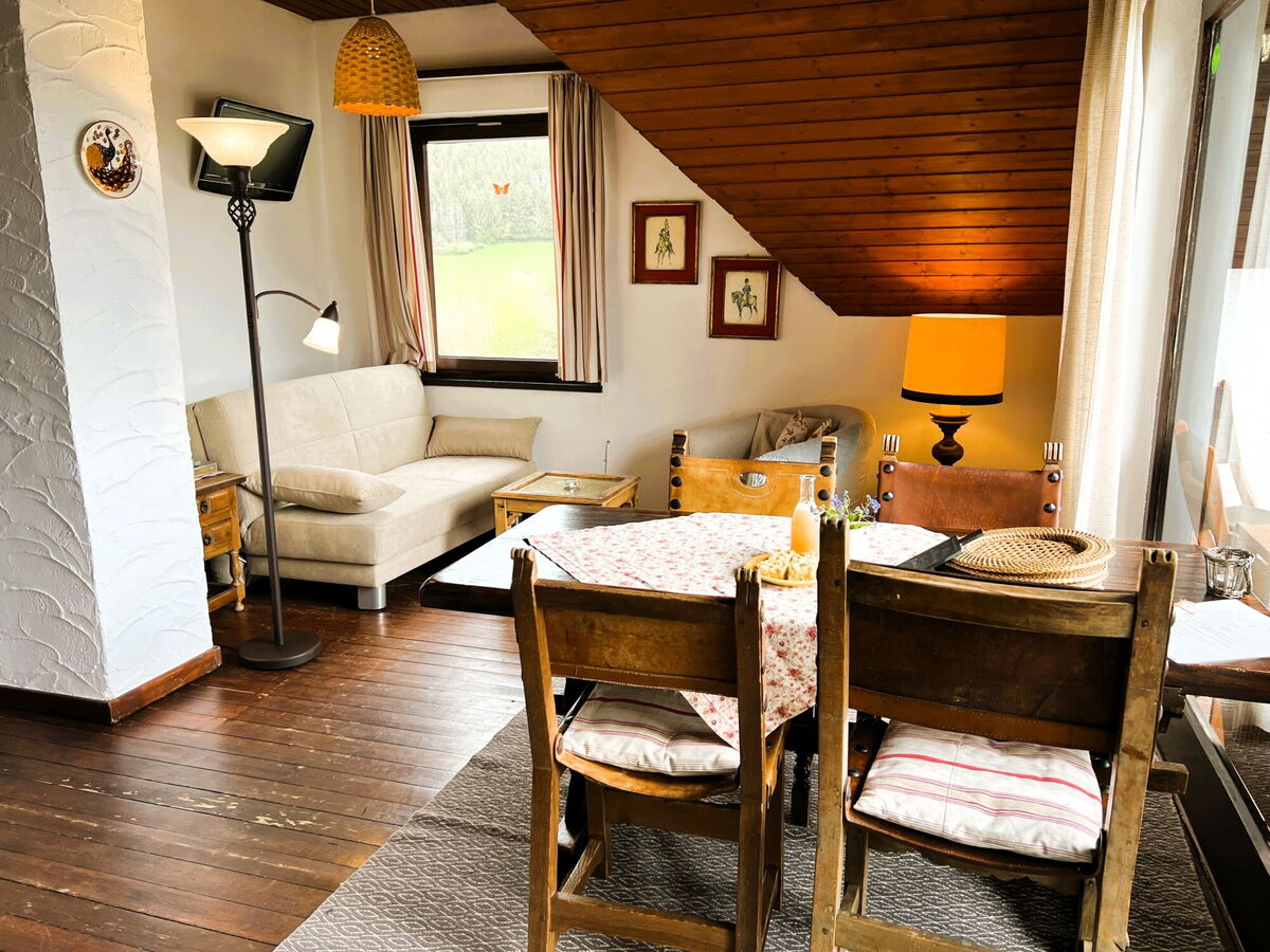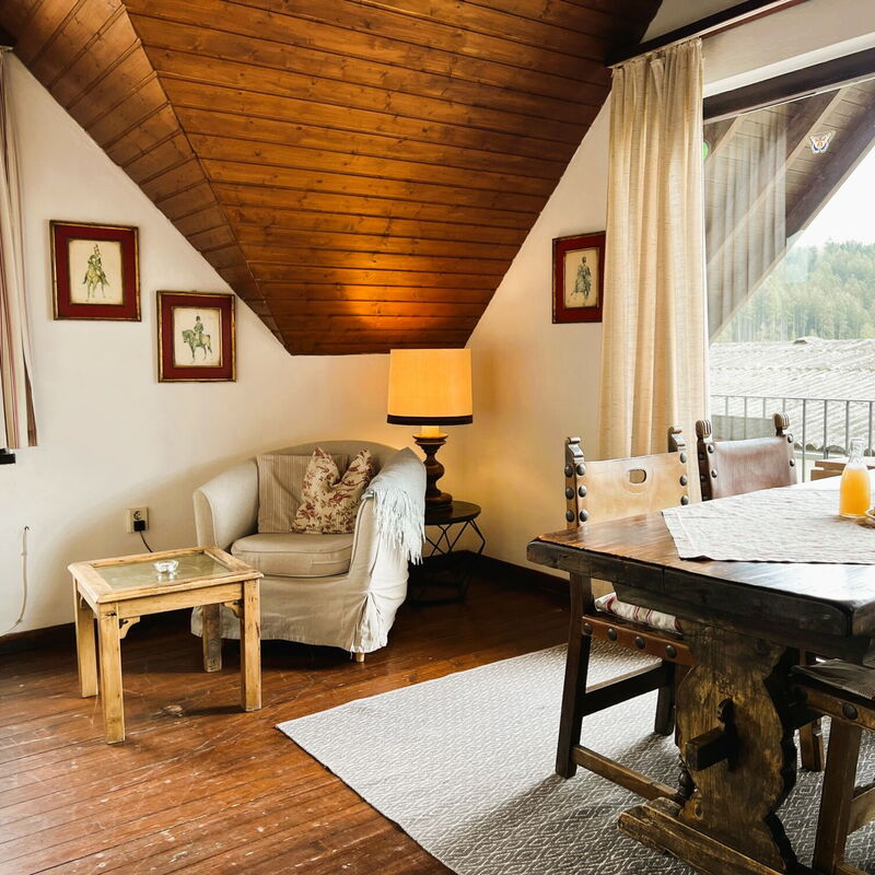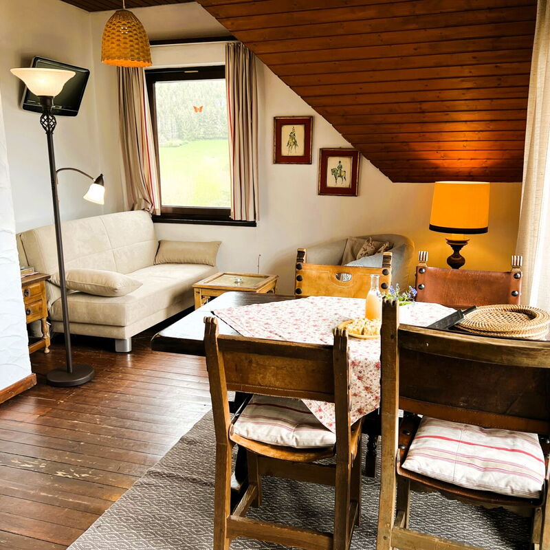 Die Wohnung ist liebevoll ausgestattet, der Blick geht auf das Gutsgeschehen und in das Wiesental.