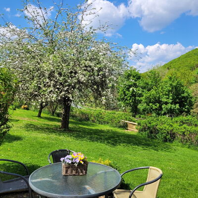 Die Ferienwohnung bietet einen herrlichen Blick auf das Wiesental mit den Pferdekoppeln, unserem Hausberg, dem Vulkan Humerich, Terrasse, Liegewiese, Gartenmöbel, Dig.Sat mit Flachbildschirm, CD-Player, gut ausgestattete und separate Küche ( Geschirrspüler, Backofen, Toaster, Kaffeemaschine, Wasserkocher, Mikrowelle, Salz, Pfeffer, Apfelessig, Öl und Küchentücher ), Parkplatz, zwei Schlafzimmer, großer Wohnraum, Badezimmer mit Dusche und WC. Kinderbett und Hochstuhl sind nach Rücksprache vorhanden.