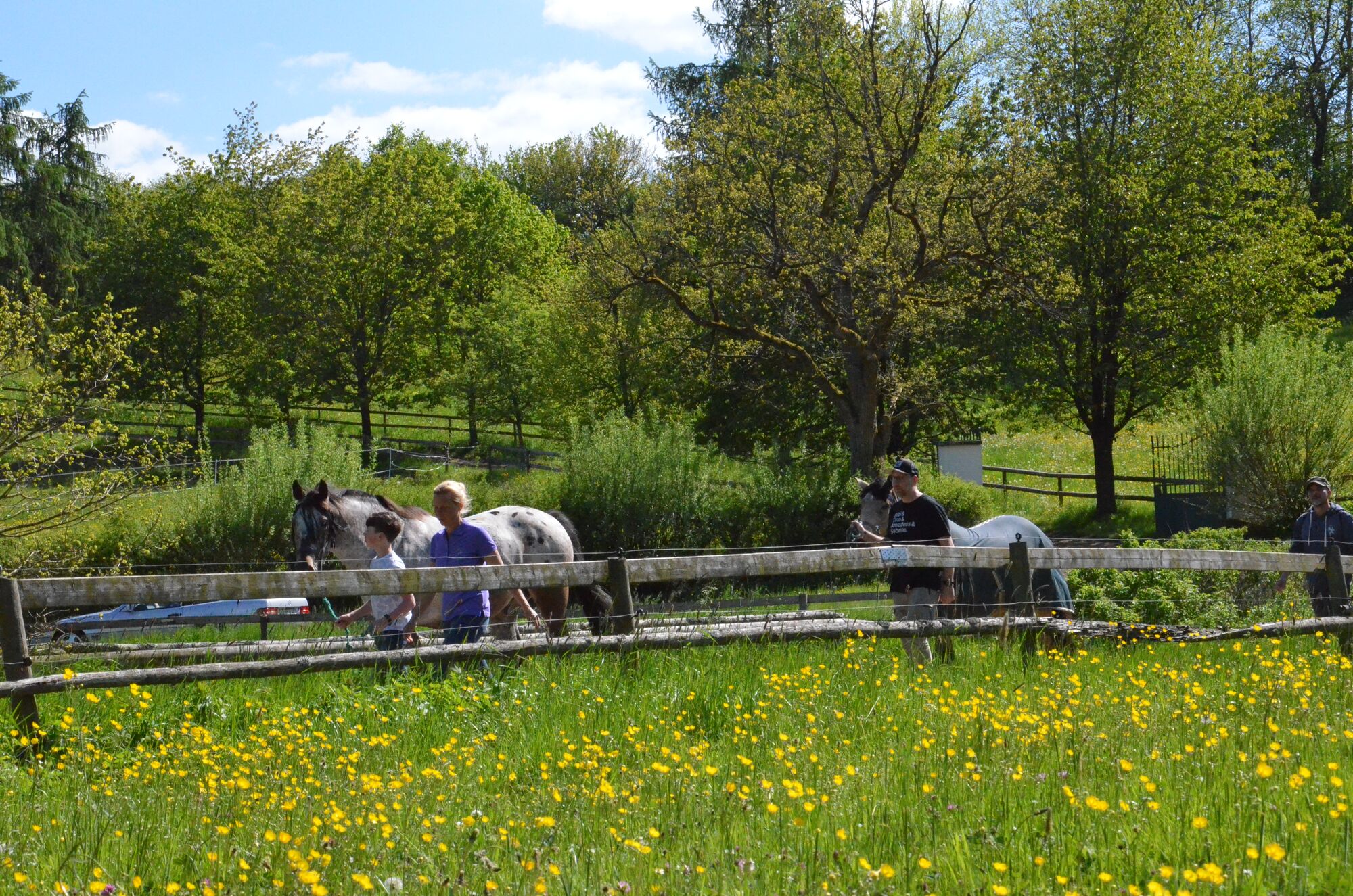Dein Familienurlaub auf dem Reiterhof wird bei uns aktiv gestaltet. Groß und Klein können das Reiten auf unseren wunderbaren Pferden genießen, herrliche Geländeritte unternehmen, Ponywanderungen erleben und an spannenden Reiterspielen teilnehmen. Zudem laden wir Dich ein, am sauberen Bach zu grillen und dabei Lagerfeuerromantik mit gratis Stockbrot und Wein zu erleben. Unser idyllischer Bachspielplatz und die Freude mit den vielen Tieren – ein tolles Erlebnis.