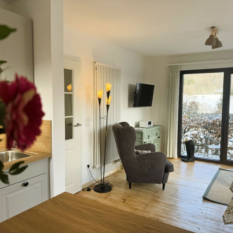 Unsere frisch renovierte Ferienwohnung „Eifelcottage“ im Landhausstil bietet Dir Platz für bis zu 4 Personen.