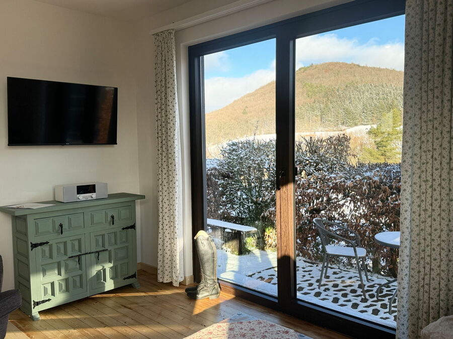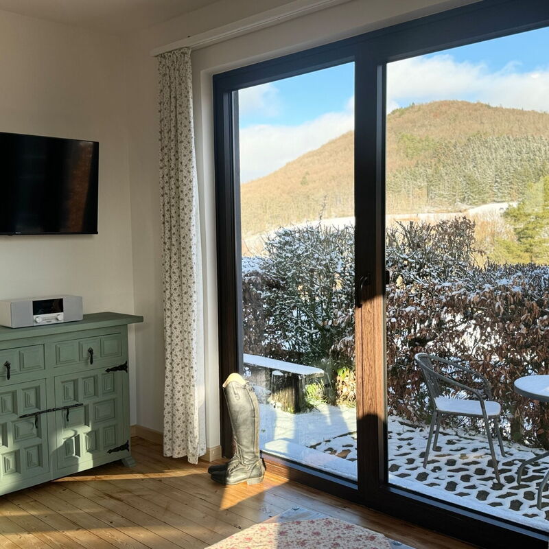 Das Eifelcottage befindet sich in zentraler Lage auf unserem Anwesen und bietet direkten Zugang zu einer eigenen Terrasse mit Gartenmöbeln.