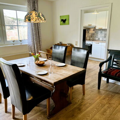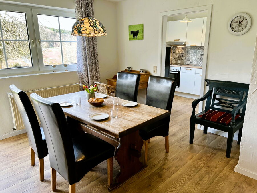 Die Ferienwohnung bietet einen herrlichen Blick auf das Wiesental mit den Pferdekoppeln, unserem Hausberg, dem Vulkan Humerich, Terrasse, Liegewiese, Gartenmöbel, Dig.Sat mit Flachbildschirm, CD-Player, gut ausgestattete und separate Küche ( Geschirrspüler, Backofen, Toaster, Kaffeemaschine, Wasserkocher, Mikrowelle, Salz, Pfeffer, Apfelessig, Öl und Küchentücher ), Parkplatz, zwei Schlafzimmer, großer Wohnraum, Badezimmer mit Dusche und WC. Kinderbett und Hochstuhl sind nach Rücksprache vorhanden.